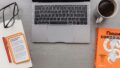 ブログアイキャッチ用。ノートPCを使う手元を、俯瞰で撮影したイメージ。ミニマルで明るい色味。